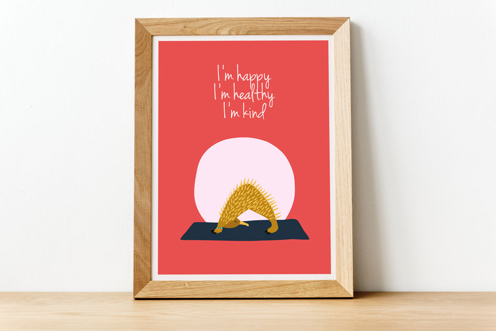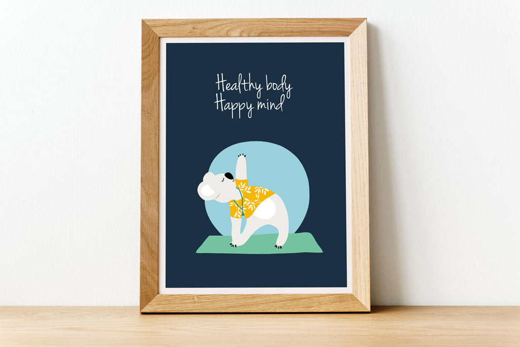 Our five beautiful posters will show our Australian-designed characters in 20 different yoga poses with their favourite mantra. With bright colours and fun yoga poses, they will be sure to level up your mood and highlight a room. These prints are perfect for home, school or yoga classes.